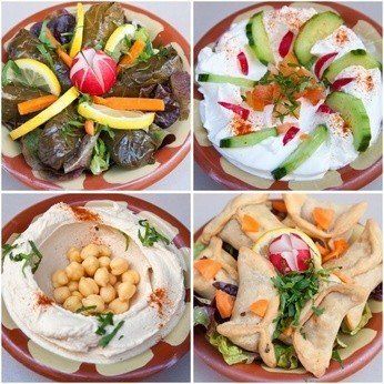 6 hors d'oeuvres froids (mezzés froids) et 4 hors d'oeuvres chauds (beignets)